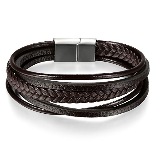 JewelryWe - سوار رجالي ونسائي من الستانلس ستيل مزين بسوار بانك مضفر من جولاري وي مع شنطة هدايا