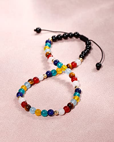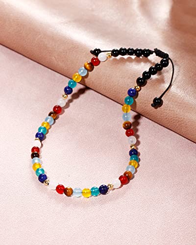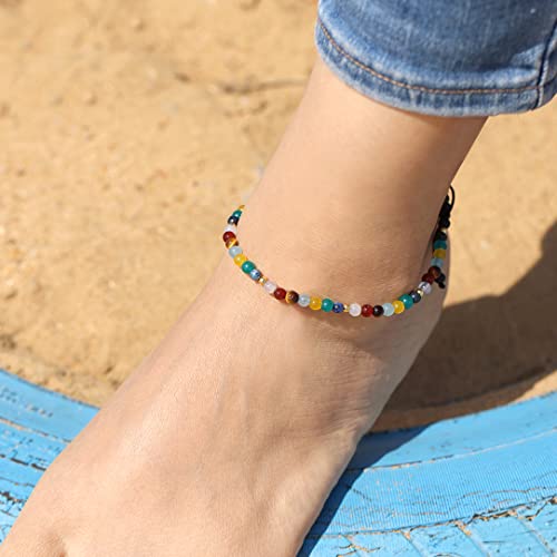 JEWEVER - جويفر سوار خلخال شاطئ شاكرا 7 للنساء من كريستالات القدم واحجار الشفاء والتوازن واليوجا والتامل والقلق، (8.5-10 انش)