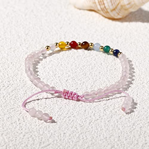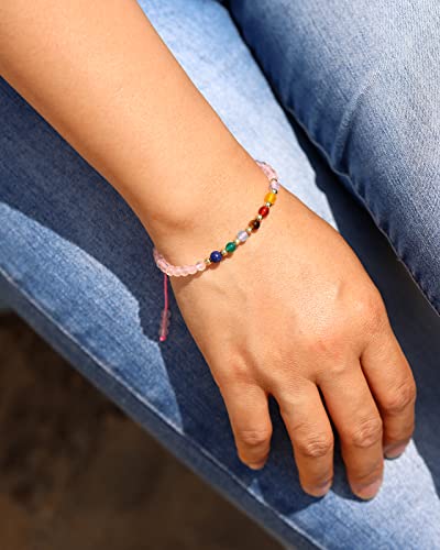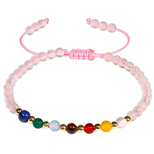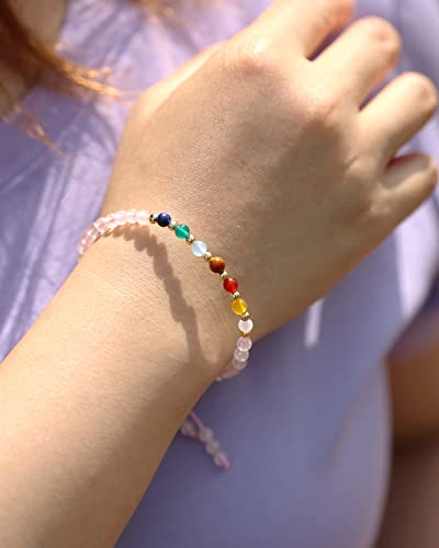 JEWEVER - جويفر 7 اساور شاكرا للنساء من الحجر الحقيقي، سوار خرز كريستالي واحجار علاجية، مجوهرات هدايا عيد الميلاد، احجار كريمة، كوارتز