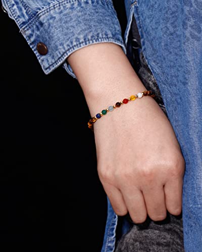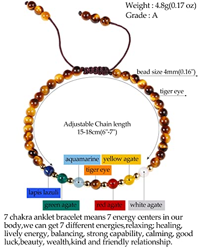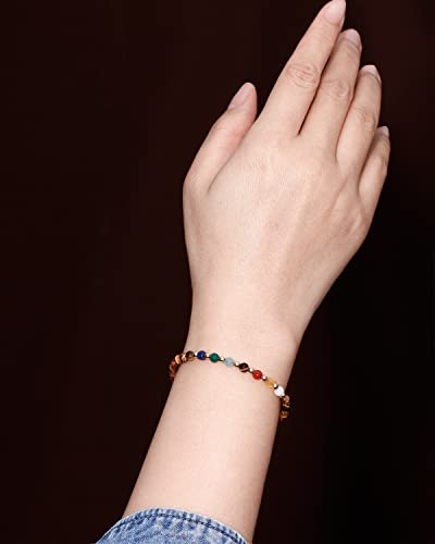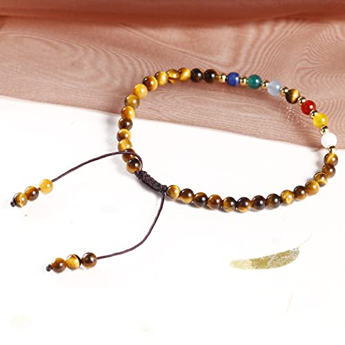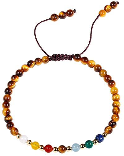 JEWEVER - جويفر 7 اساور شاكرا للنساء من الحجر الحقيقي، سوار من الخرز الكريستالي والاحجار العلاجية، مجوهرات هدايا عيد الميلاد (عين النمر)