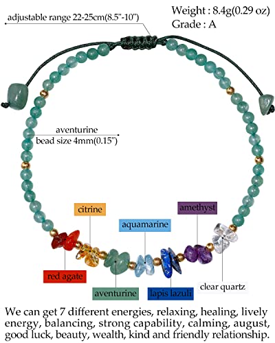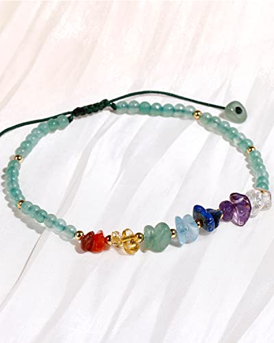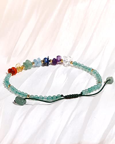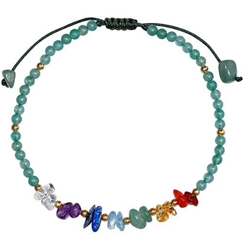 JEWEVER - خلخال خرز قابل للتعديل من أحجار الشاكرا السبعة الحقيقية لطاقة الشفاء والأحجار الكريمة للنساء من جويفر (افينتورين)