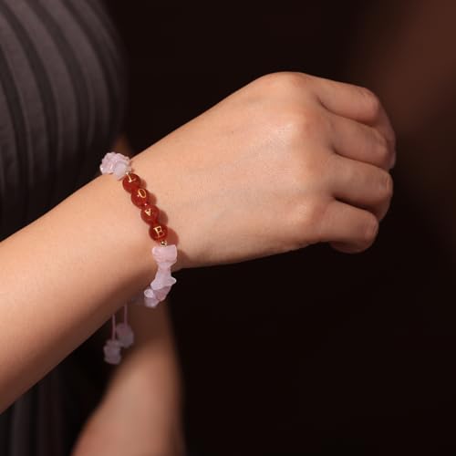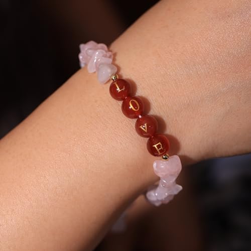 JEWEVER - جويفر اساور خرز مصنوعة يدويا بحروف الحب الابدى للنساء، كريستالات واحجار علاجية ورقائق شجاعة، مجوهرات ملهمة هدايا حجر الميلاد اساور الصداقة