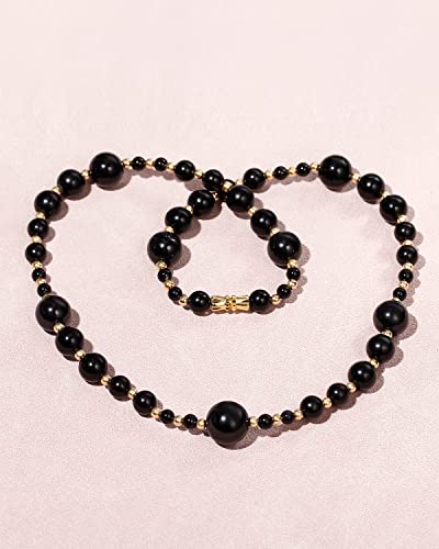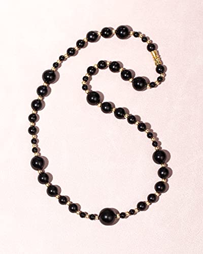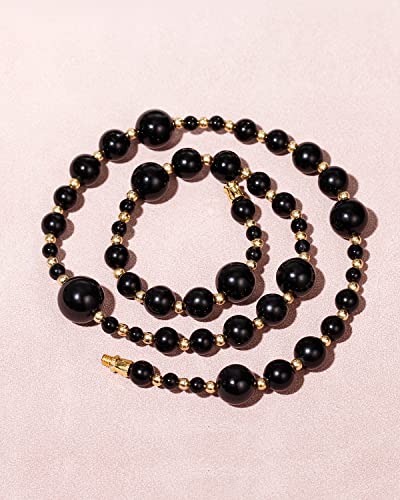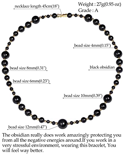 JEWEVER - جويفر سلسلة خرز من الزجاج البركاني الاسود للنساء والرجال، قلادة ريكي العلاجية والكريستالات والاحجار الكريمة، قلادة خرز من الاحجار الطبيعية، هدايا مجوهرات للجنسين