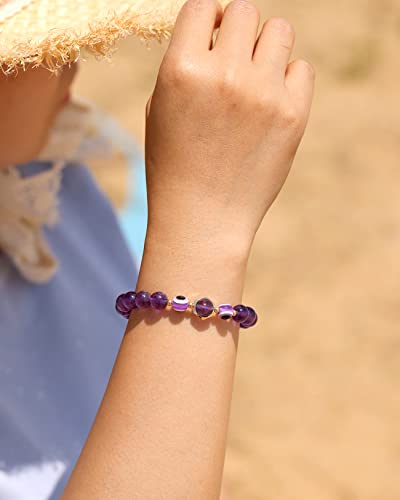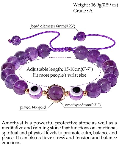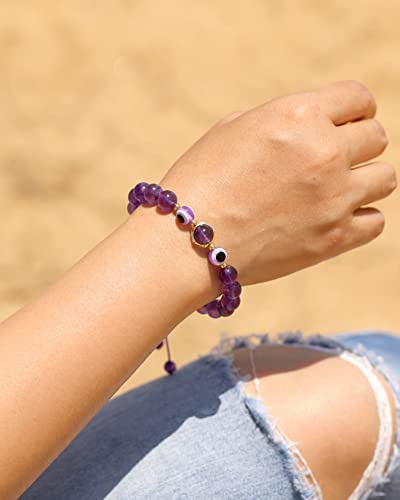 JEWEVER - جويفر سوار خرز بتصميم عين الحسد للنساء اساور الصداقة كريستالات الشفاء الروحي للحماية من القلق تميمة العين الشريرة احجار كريمة تجلب الحظ السعيد مجوهرات قابلة للتعديل 6 انش - 7