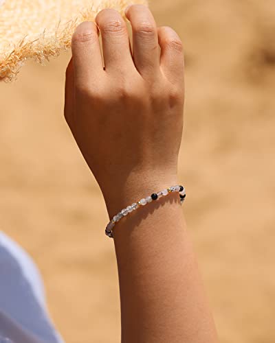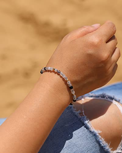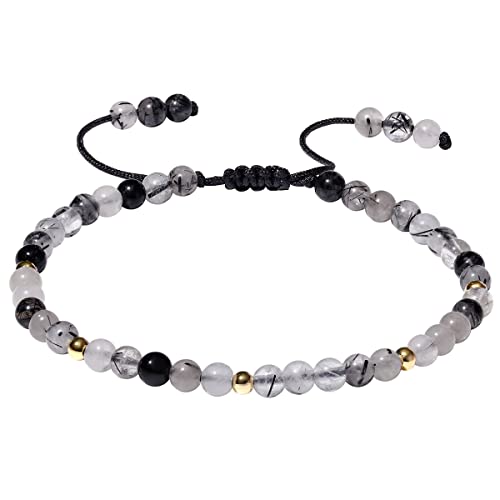 JEWEVER - جويفر سوار احجار كريمة للنساء من الكريستال والاحجار العلاجية اساور شاكرا كريستال طاقة علاجية هدايا مجوهرات قابلة للتعديل 4 ملم كوارتز روتيل