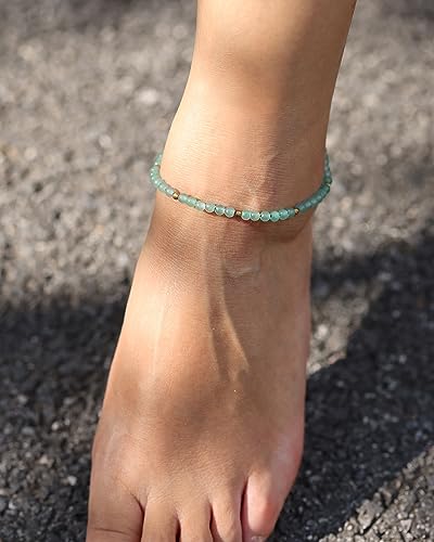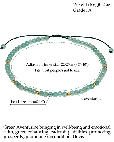 JEWEVER - خلخال مرصع بالأحجار الكريمة للنساء من جويفر مزين بخرز الطاقة وأحجار الاستشفاء قابل للتعديل الكريستال للارتداء على الشاطئ 21.5 - 25 سم أحجار الأفينتورين