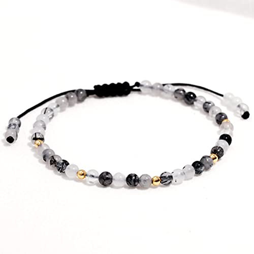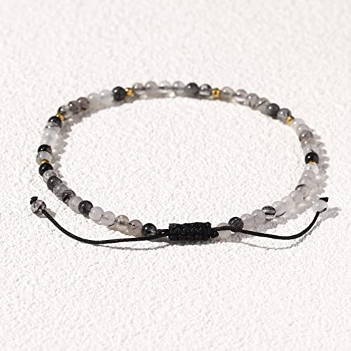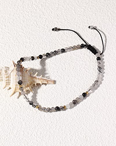 JEWEVER - خلخال من الأحجار الكريمة للنساء من جويفر، خلخال مزين بخرز الطاقة وأحجار الاستشفاء، خلخال قابل للتعديل من الكريستال للارتداء على الشاطئ (21.5 - 25 سم)، أحجار كوارتز روتيل