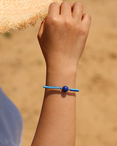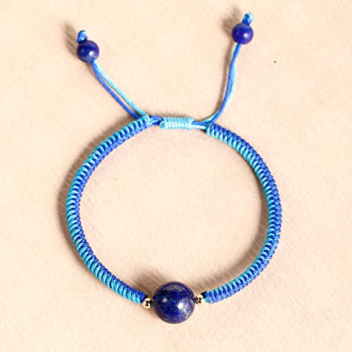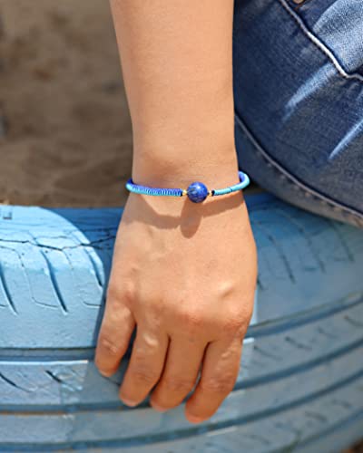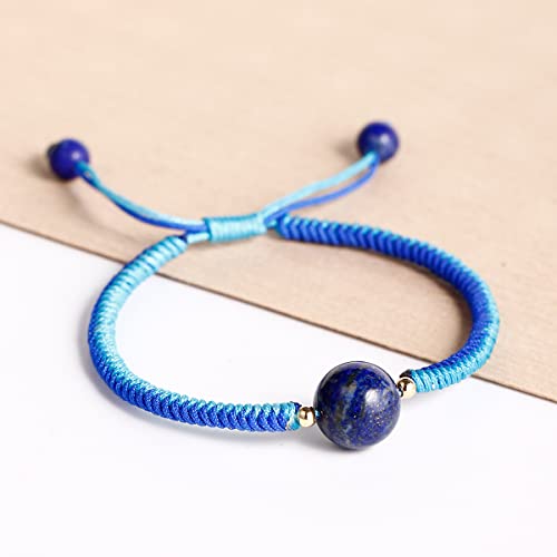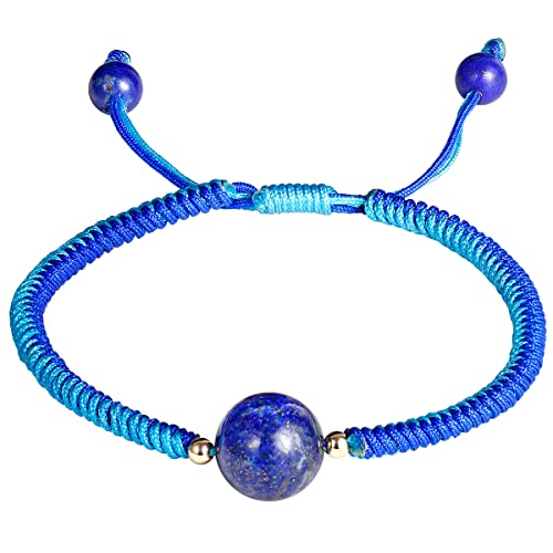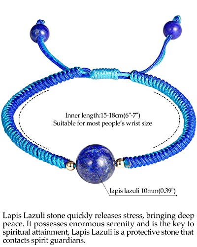 JEWEVER - جويفر سوار صداقة مضفر مصنوع يدويا للنساء من الكريستال والاحجار الكريمة اساور خرز 10 ملم قابلة للتعديل نحاسي لازورد