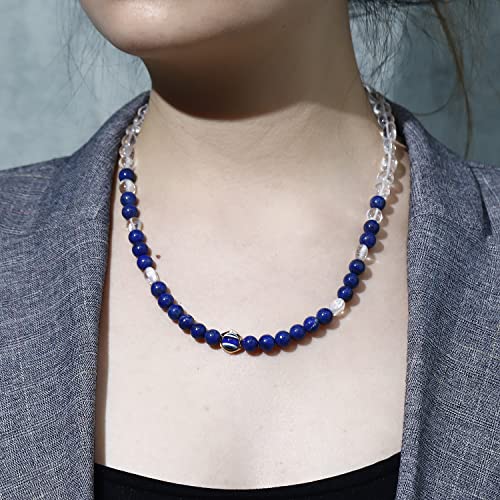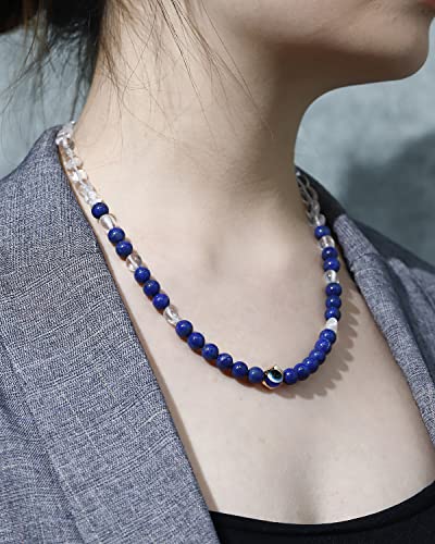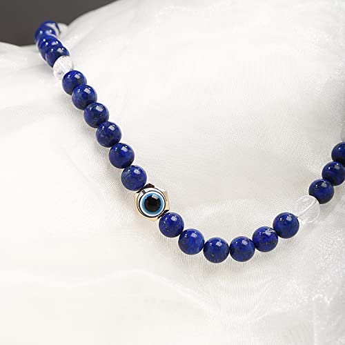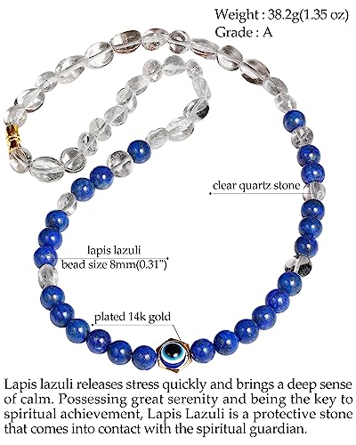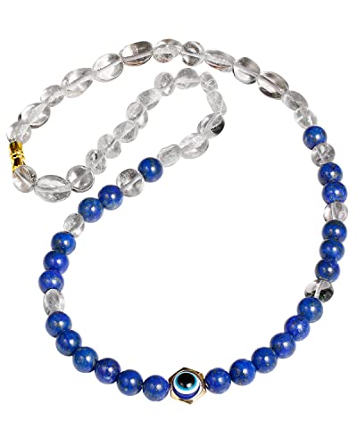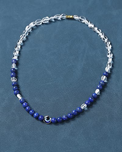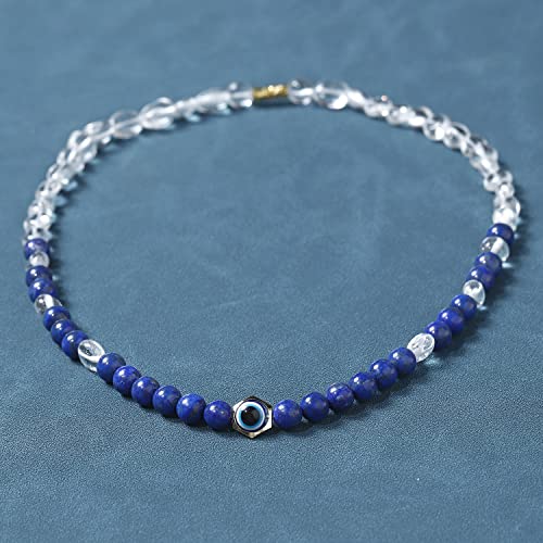 JEWEVER - جويفر قلادة عين الحسد من كريستال الكوارتز الشفاف لازورد خرز للحماية الطاقة للنساء والرجال احجار علاجية هدايا كريستالية كريمة