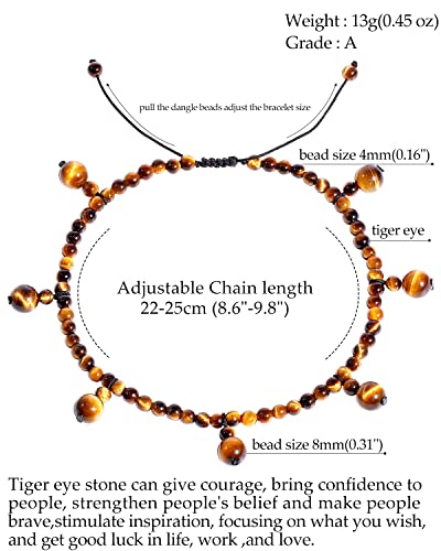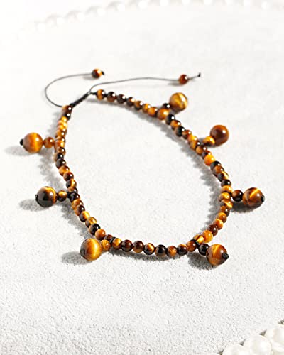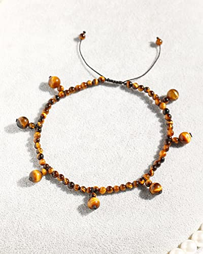 JEWEVER - جويفر اساور كاحل مطرزة بكريستالات طبيعية واحجار كريمة للنساء، كريستالات واحجار علاجية، احجار كريمة لليوجا والتامل، مجوهرات مضادة للقلق (عين النمر)
