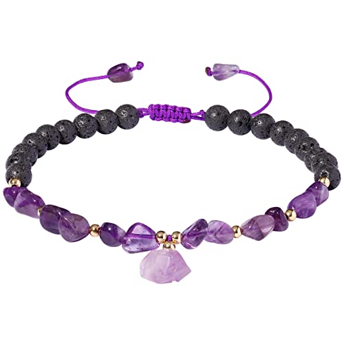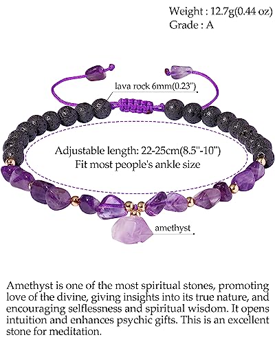 JEWEVER - جويفر خلخال خرز من حجر اللافا ريكي دروزي-اميثيست اساور كاحل لموزع الزيوت العطرية الكاحل للنساء في الصيف والشاطئ مجوهرات لتخفيف القلق والاسترخاء الجمشت