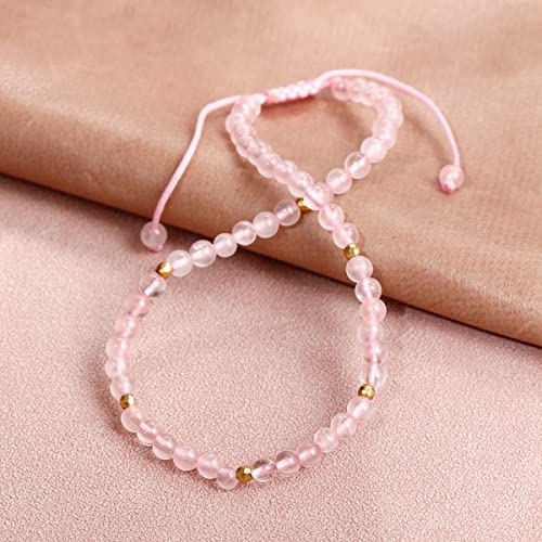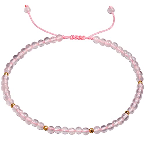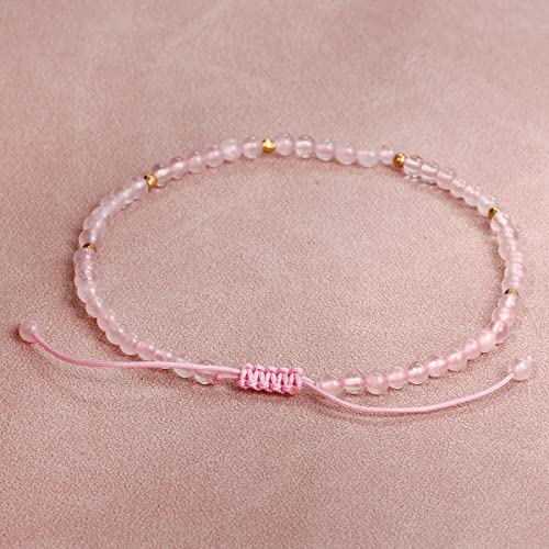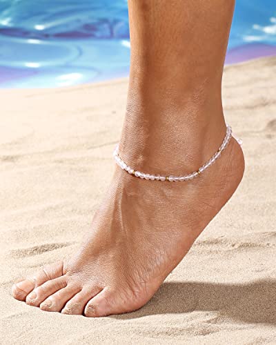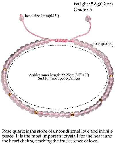 JEWEVER - خلخال من الكوارتز الوردي للنساء من الكريستال والأحجار العلاجية من جويفر، موزع للزيوت العطرية، خلخال للشاطئ قابل للتعديل (21.5 - 25 سم)