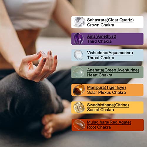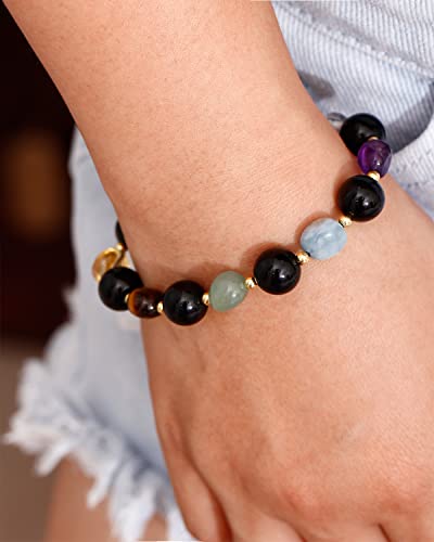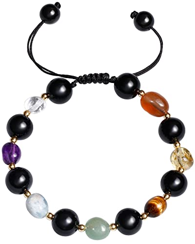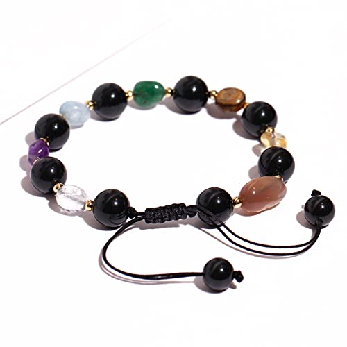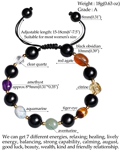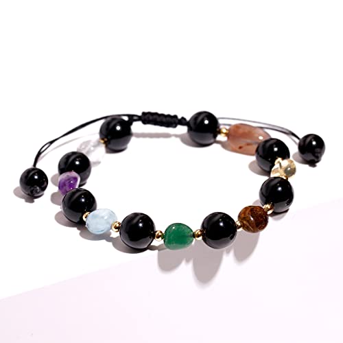 JEWEVER - جويفر سوار خرز دائري من الزجاج البركاني الاسود / 7 شاكرا للنساء من كريستالات الشفاء واحجار كريمة، اساور توازن روحية مضادة للقلق واليوجا والتامل