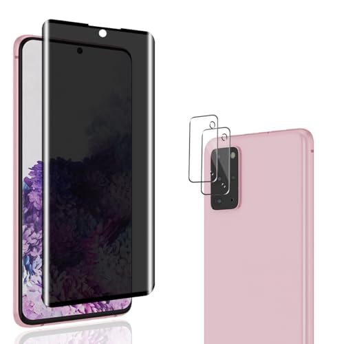 Jewloofa - شاشة حماية للخصوصية من الزجاج المقوى مضاد للتجسس و2 واقي كاميرا، واقي شاشة من الزجاج المقوى بدرجة صلابة 9 لموبايل سامسونج جالاكسي S20 بلس من جولوفا