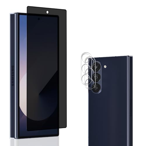 Jewloofa - واقي شاشة للخصوصية من جولوفا لموبايل سامسونج جالاكسي Z فولد 6، قطعة واحدة من الزجاج المقوى وقطعتين من واقي الكاميرا، شاشة عالية الدقة HD خالية من الفقاعات، واقي شاشة زجاجي لجالاكسي Z فولد 6