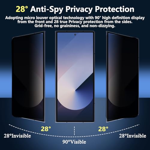 - 👍【حماية الخصوصية】مصممة خصيصًا لهاتف سامسونج جالاكسي Z فولد 6، الشاشة مرئية فقط للشخص الموجود أمام الشاشة مباشرة، ولا يمكن رؤية أي شيء على الجانب. زجاج مقوى للخصوصية لهاتف سامسونج جالاكسي Z فولد 6 يحمي نفسك بفعالية من أعين المتطفلين في الأماكن العامة مثل الحافلات والمصاعد ومترو الأنفاق ويوفر حماية خالية من العيوب للمعلومات. (جميع واقيات الشاشة المضادة للتجسس لا تدعم فتح بصمات الأصابع.)