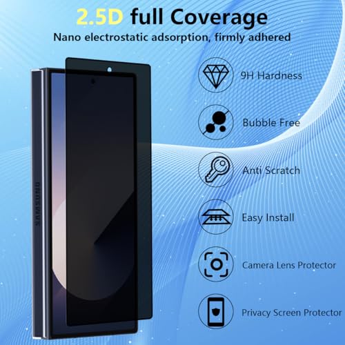 - 👍【مقاوم للماء ومضاد لبصمات الأصابع وسهل التركيب】طلاء قوي وفعال مقاوم للزيوت والماء يمكن أن يمنع بصمات الأصابع من العرق والشحوم، مما يحافظ على شاشتك نظيفة دائمًا. سهل التركيب، يمكن تثبيت واقي شاشة الخصوصية بشكل مثالي دون أي خبرة (ملاحظة: اقرأ تعليمات التجميع البسيطة قبل التركيب).
