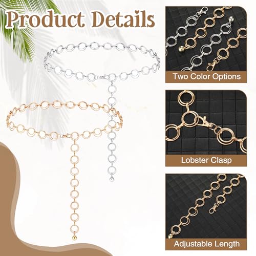 Jeyiour - جيور 2 قطعة حزام الخصر سلسلة حزام للنساء لطيف الجسم حزام ربط حزام حزام حزام سلسلة ضيق فستان بوهو سلسلة الخصر (لطيف، 39 انش)