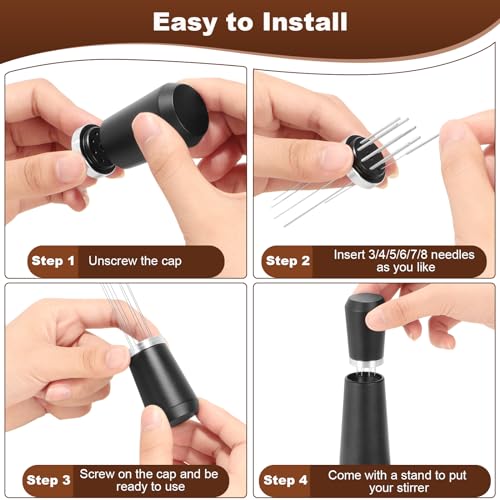 Jeymei - أداة تحضير قهوة اسبريسو دبليو دي تي من جيمي مصنوعة من الفولاذ المقاوم للصدأ 304 بـ8 دبابيس مع حامل مع 9 إبر إضافية قابلة للاستبدال