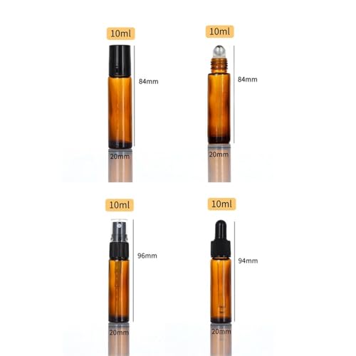 Jhania - 12 قطعة من زجاجات الزيت العطري من جهانيا، زجاجات بخاخ زجاجية بنية سعة 10 مل، زجاجات قطارة زجاجية فارغة قابلة لاعادة الملء للعناية بالبشرة (4 زجاجات دوارة، 4 زجاجات بخاخ، 4 زجاجات قطارة)