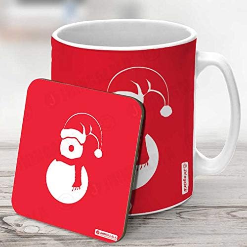 JHINGALALA - مج من السيراميك وقاعدة اكواب مطبوعة بنمط الكريسماس مجموعة هدايا للكريسماس للعائلة والاصدقاء والبنات والاولاد والنساء والرجال من جينجالالا، أبيض