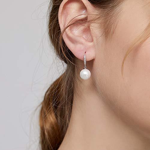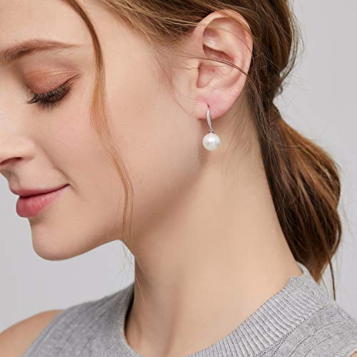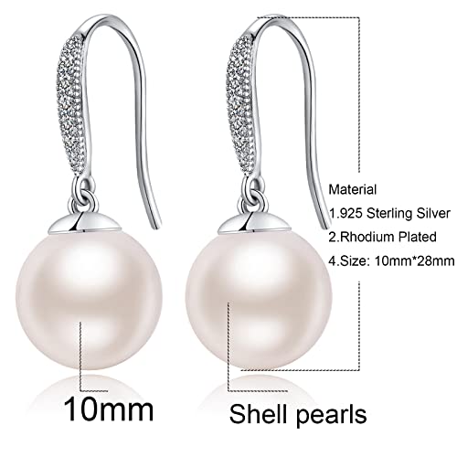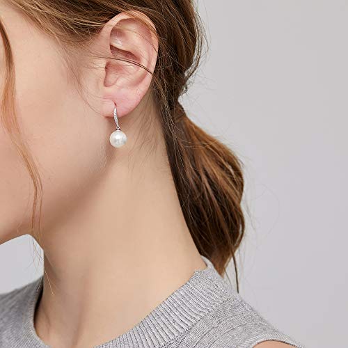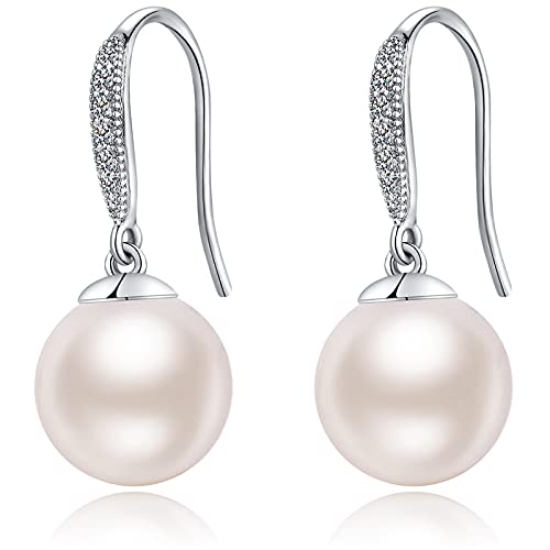 Jiahanzb - جيهانزب اقراط لؤلؤ مطلية بالذهب الابيض عيار 18 قيراط من النمسا من الفضة الاسترليني عيار 925 لا تسبب الحساسية، اقراط متدلية من اللؤلؤ، مجوهرات راقية هدية للنساء