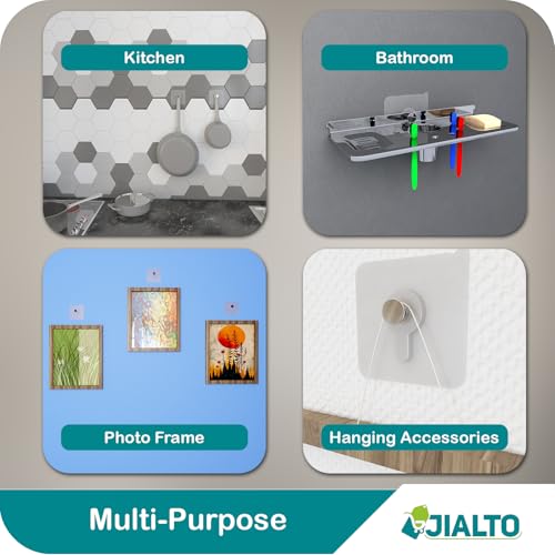 JIALTO - جيالتو 10 قطع من خطافات إطارات الصور للتعليق على الحائط بدون حفر/خطافات ذاتية اللصق للتعليق على الحائط بمسامير قوية شديدة التحمل لتعليق إطار الصورة على الحائط/ساعة الحائط/إكسسوارات المطبخ، بلاستيك