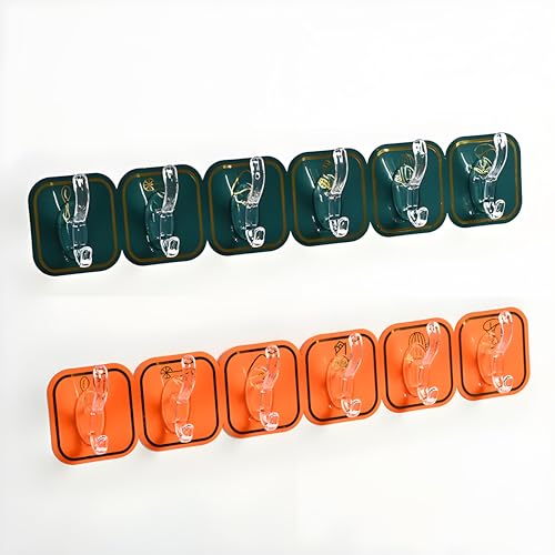 JIALTO - شماعات حائط لاصقة سحرية ذاتية اللصق من جيالتو، شماعات وخطافات للمطبخ، خطافات تعليق قماشية متينة للجدار بدون ثقب، مثالية لتنظيم المنزل والمطبخ لون برتقالي، عبوة من قطعتين
