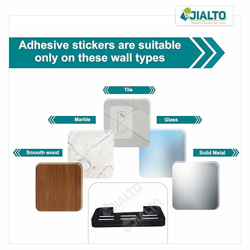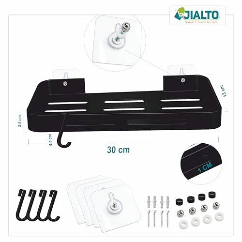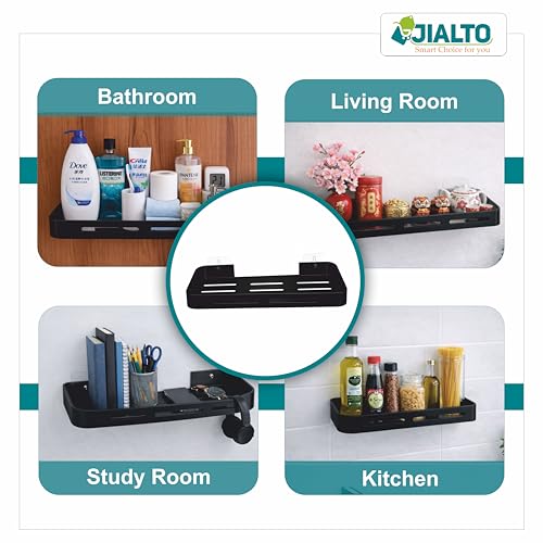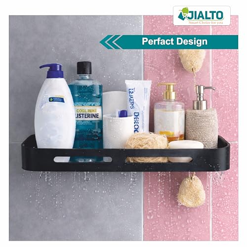 JIALTO - رف حمام من جيالتو لتنظيم الحمام على الحائط | منظم ذاتي اللصق | حامل بدون ثقب | اكسسوارات ورف تخزين اسود ألومنيوم