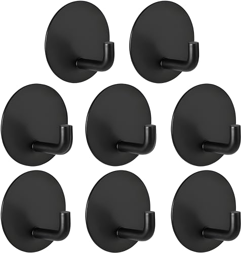 JIALTO - 8 قطع من خطافات ستانلس ستيل ذاتية اللصق جيالتو: شماعات جدارية شديدة التحمل مقاومة للماء وخالية الحفر - قوية لتعليق المناشف والمعطف والمطبخ للحمام لون اسود دائري على شكل حرف J