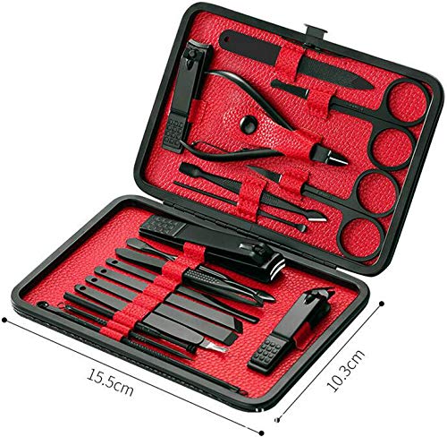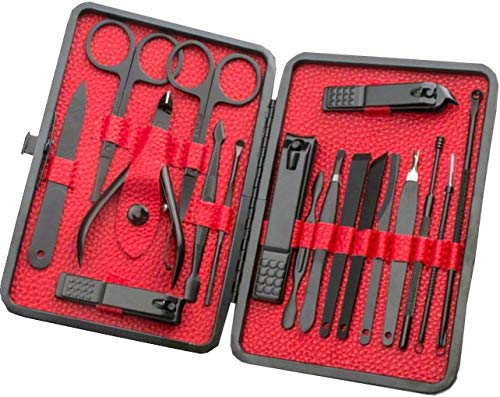 Jiaweixiang - مجموعة المانيكير والباديكير الاحترافية، اد العناية بالاظافر مصنوعة من الستانلس ستيل مع حافظة جلد رفيعة، وشنطة هدايا، للرجال والنساء، 18 قطعة، متعدد الالوان