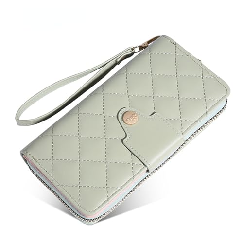 JIAWERUIDE - محفظة من جياويرويد مصنوعة من جلد PU للنساء، بتصميم عصري باللون الأخضر، مع فتحات متعددة للبطاقات وحزام معصم