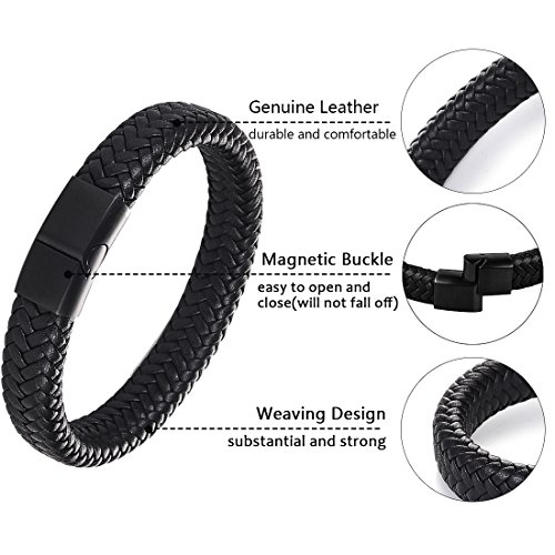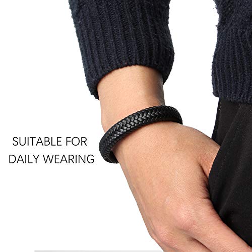 JIAYIQI - اساور من الجلد المضفر بمشبك مغناطيسي للرجال جيايكي مقاس 7.5-8.5 بوصة length: 22cm جلد