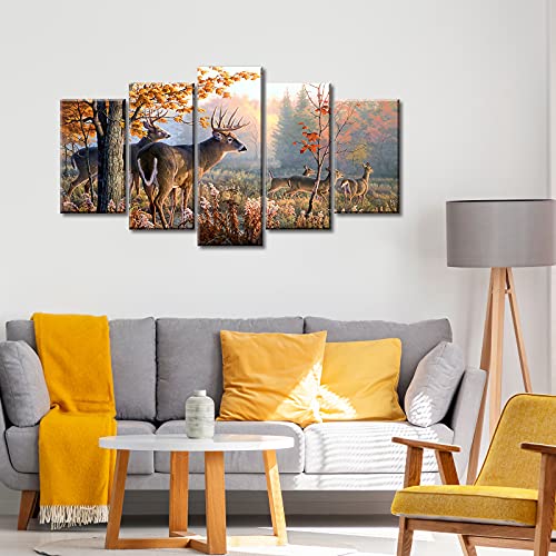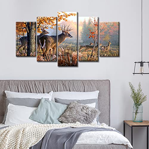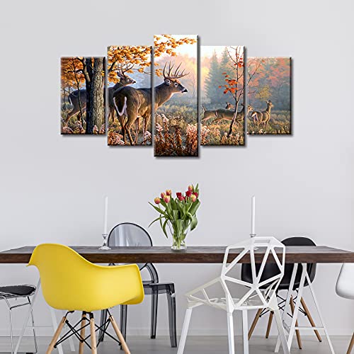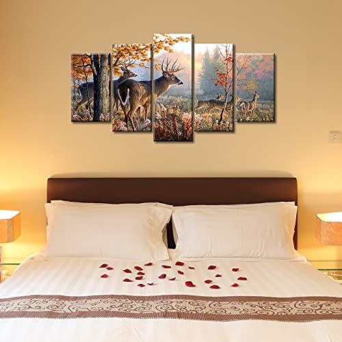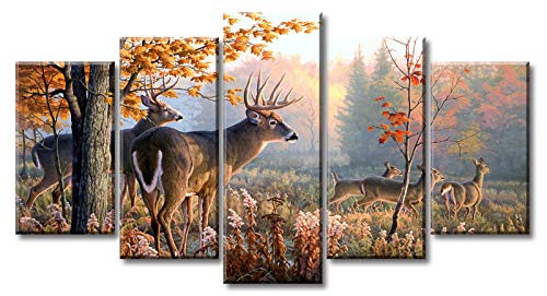 JiazuGo - جيازوجو لوحة فنية جدارية بتصميم غزال مطبوعة على قماش مطبوع عليها صورة غابة للنزل وغرفة المعيشة وغرفة النوم والمكتب والمنزل مشدود ومؤطر جاهزة للتعليق 40 انش عرض × 22 انش ارتفاع 5 قطع، متعدد الألوان