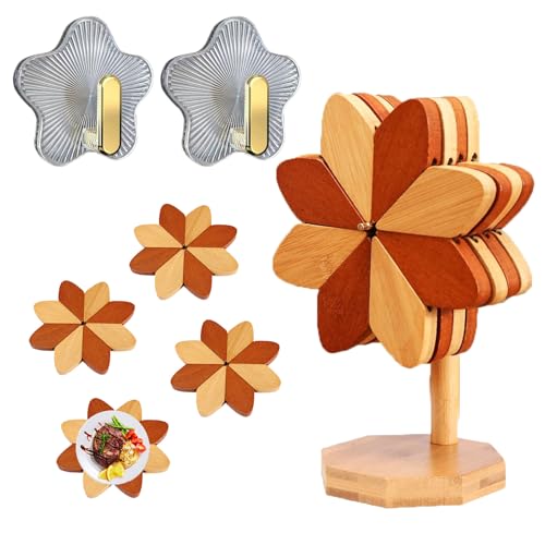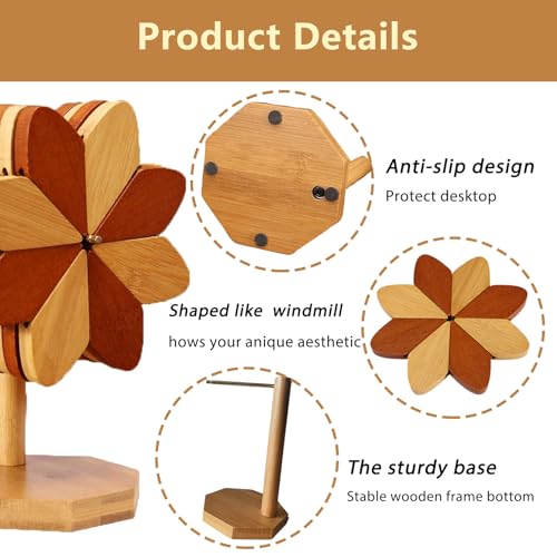 JIBEIWUYU - قاعدة طاحونة هوائية خشبية للاواني الساخنة والمقالي واكواب القهوة، مجموعة من 4 ركائز وحامل واحد من جيبيويو