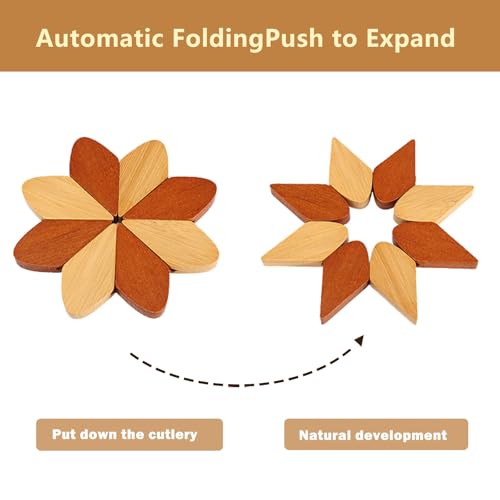 - مواصفات المنتج: هذا الحامل ثلاثي القوائم الخشبي للأطباق الساخنة مصنوع من الخشب المقاوم للحرارة مع 4 حوامل ثلاثية وحامل واحد على شكل شجرة. يمكن فتحها حتى 6.1 انش ويبلغ طولها 9.05 انش، مثالية للأطباق الساخنة