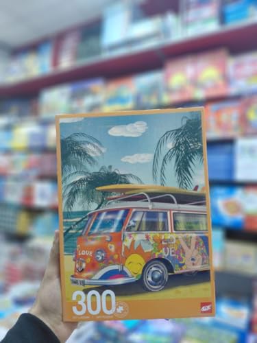 - أحجية الصور المقطوعة المكونة من 300 قطعة: تتميز بتصميم شاحنة ركوب الأمواج الكلاسيكية النابضة بالحياة مع أشجار النخيل ولوح ركوب الأمواج، مثالية لعشاق الألغاز الذين يبحثون عن تحدٍ معتدل
