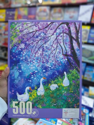 - بازل مكون من 500 قطعة: تتميز بمشهد شجرة أزهار الكرز الأرجواني المذهل مع بطة بيضاء في بيئة حديقة هادئة، مثالية لعشاق الألغاز ومحبي الفن.