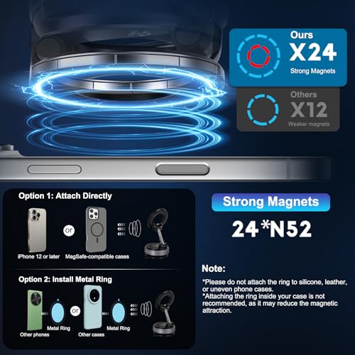 - مقبض مغناطيسي لا مثيل له للقيادة الآمنة: يتميز بمجموعة رائعة من 16 مغناطيسًا N52 عالي القوة، يوفر حامل الهاتف المغناطيسي للسيارة ضعف قوة التثبيت. انعطافات حادة وشجاعة ورحلات وعرة بكل ثقة، حيث يبقى هاتفك مثبتًا بإحكام، مما يضمن بقاء تركيزك على الطريق أمامك