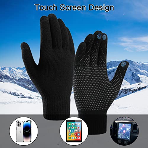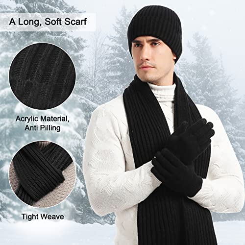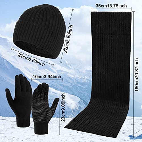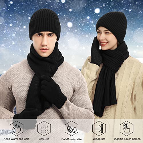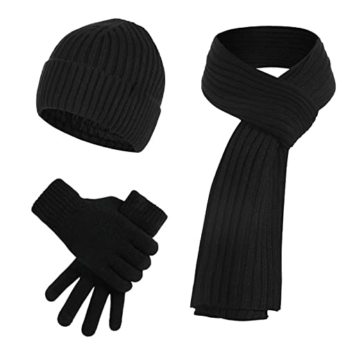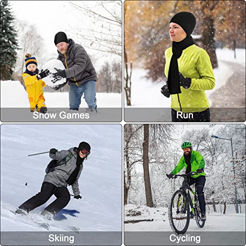 JIMACRO - طقم شتوي للرجال والنساء من جيماكرو، مكون من طاقية صغيرة وسكارف شتوي منسوج دافئ وجوانتي حراري يعمل مع شاشات تعمل باللمس، طقم طاقية وسكارف وجوانتي ببطانة سميكة من الصوف للتزلج، 3 قطع