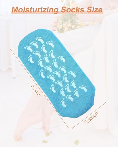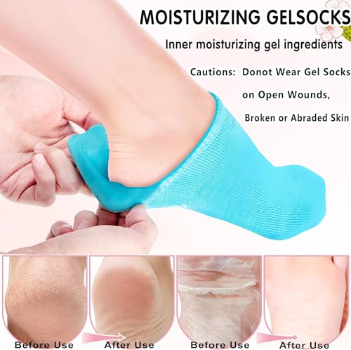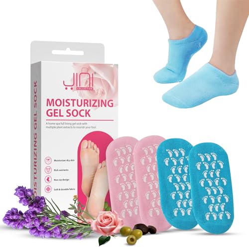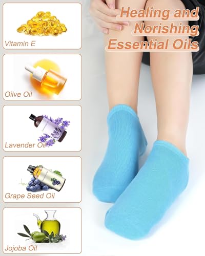 JINI COLLECTION - جوارب جل سيليكون مرطبة للرجال والنساء من جيني كوليكشن، جوارب جل للقدمين الجافة المتشققة وعلاج الكعب وترطيب القدم، بالزيت الطبيعي وفيتامين اي (1 زوج بلون أزرق سماوي)