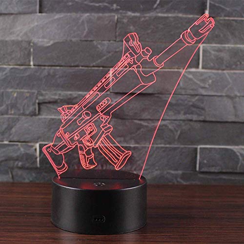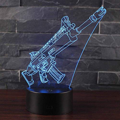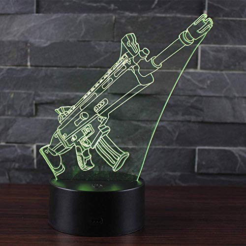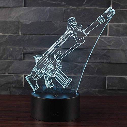 Jinnwell - مصباح ليلي بتصميم مسدس ثلاثي الأبعاد من جينويل، مصباح ليلي وهمي بـ7 ألوان متغيرة باللمس، مصباح لتزيين الطاولة والمكتب، مصباح اكريليك مسطح بقاعدة ايه بي اس وكابل USB (حافلة)