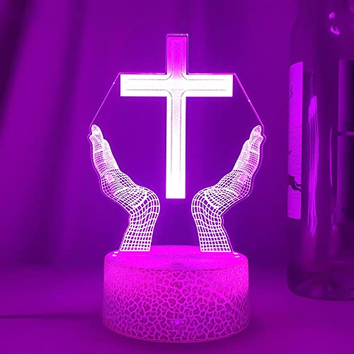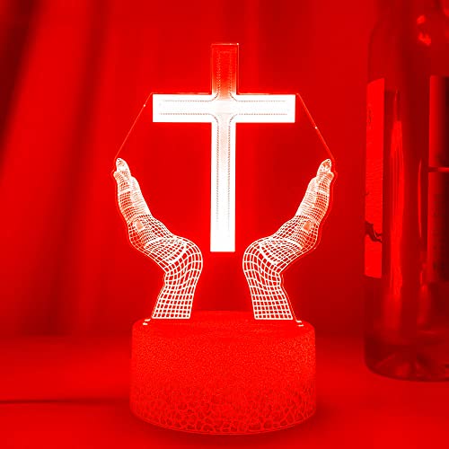 Jinnwell - جين ويل مصباح ليلي ثلاثي الابعاد بتصميم صليب يسوع، مصباح ليلي وهمي بـ16 لون متغير لتزيين الطاولة والمكتب، هدية مع قاعدة اكريليك مسطحة من مادة ABS وكيبل USB