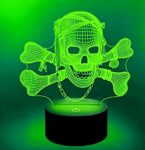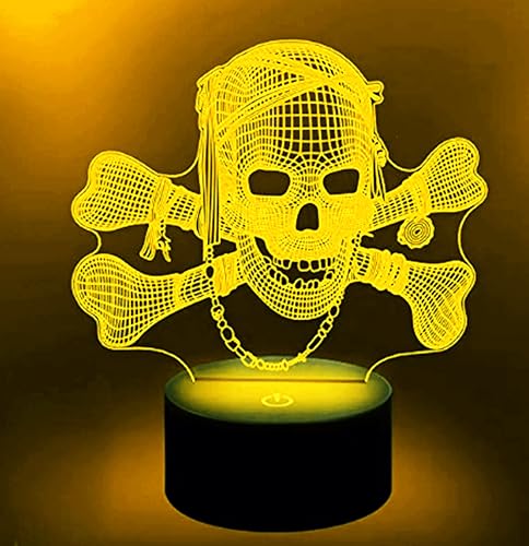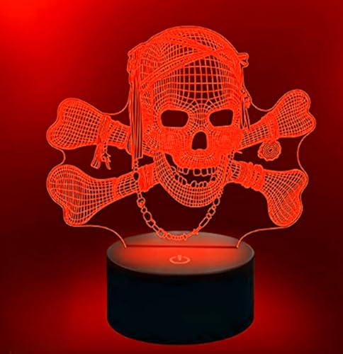 Jinnwell - مصباح ليلي ثلاثي الأبعاد على شكل جمجمة من جين ويل، مصباح ليلي وهمي بـ16 لون متغير لتزيين الطاولة والمكتب، مصباح هدية من الأكريليك بقاعدة مسطحة من مادة ايه بي اس وكابل USB
