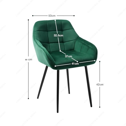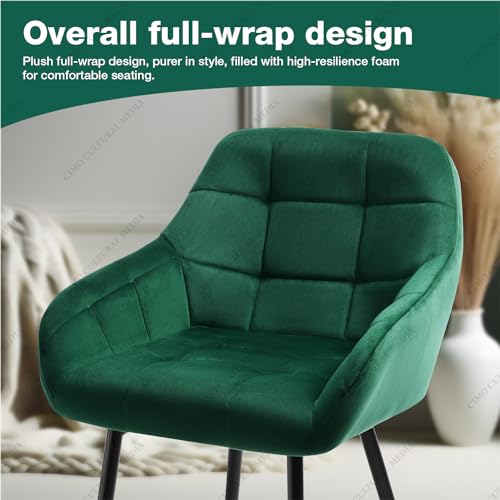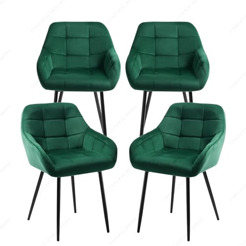 JINPALAY - مجموعة كراسي طعام مخملية 4 قطع من جينبالاي، كراسي مطبخ عصرية باطار معدني منجد بلون اخضر لغرفة الطعام والمطبخ (4)