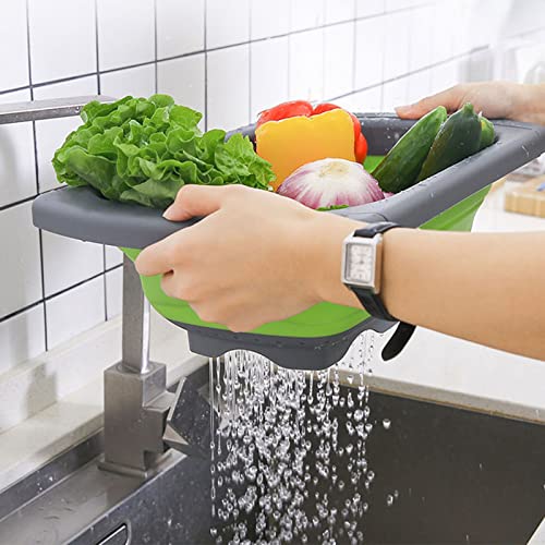 JINRONG - مصفاة حوض قابلة للطي وقابلة للتوسيع لحوض المطبخ مناسبة لغسيل الفواكه والخضروات فوق الحوض من جينرونج