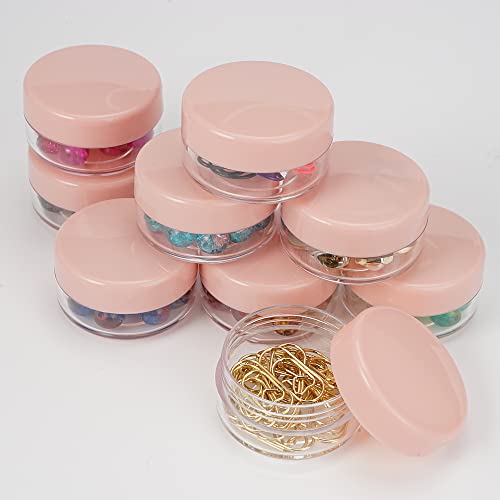 Jinsion - برطمانات كريم فارغة، حاويات مرطب شفاه سعة 10 مل، علب صغيرة مع أغطية بلاستيكية، مجموعة علب صغيرة للسفر، لمستحضرات التجميل للكريم، واللوشن، والأقنعة، ومستحضرات التجميل، وفن الأظافر، وأحجار الراين، بينك،