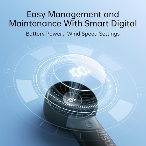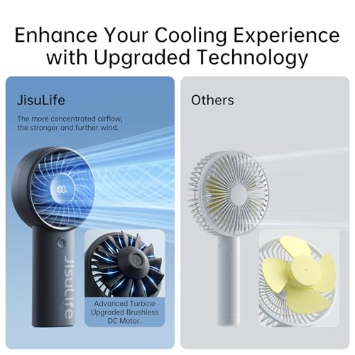 JISULIFE - جيزليف مروحة صغيرة محمولة باليد 5000mAh مطورة مع رياح قوية يد قابلة لاعادة الشحن بمنفذ USB شاشة رقمية 5 سرعات هواء مثالية للسفر-المدرسة-الرموش اسود 0.025 واط
