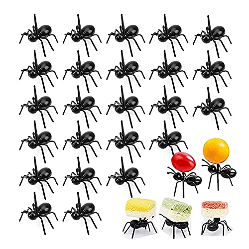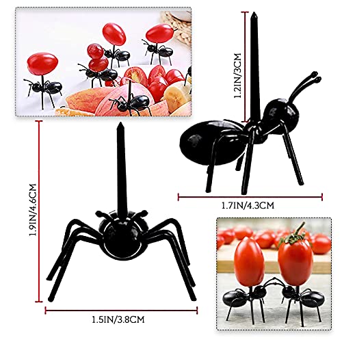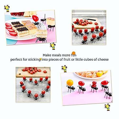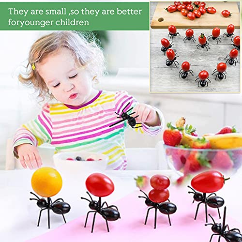 JiYanTang - شوكة التقاط الطعام بتصميم نمل عامل متحرك قابلة لاعادة الاستخدام للوجبات الخفيفة والحلوى والكيك والفاكهة مع علبة تخزين للمطبخ وحفلات السبوع والزفاف واعياد الميلاد من 24 قطعة