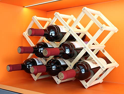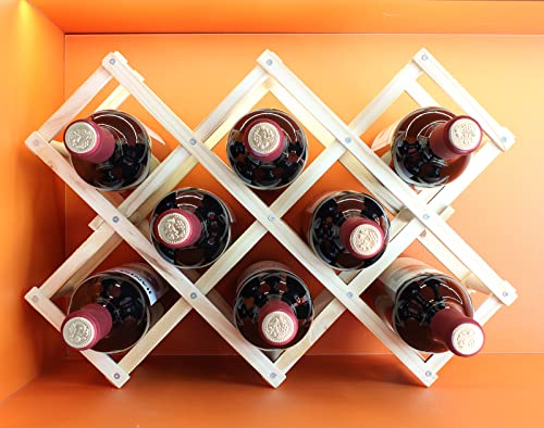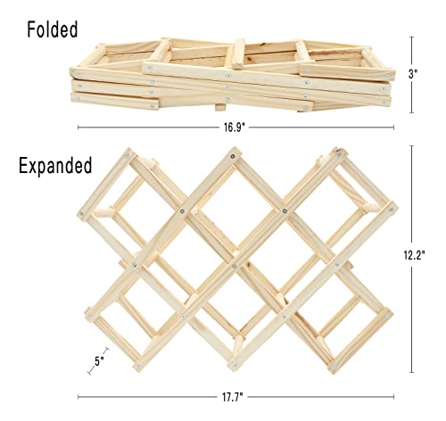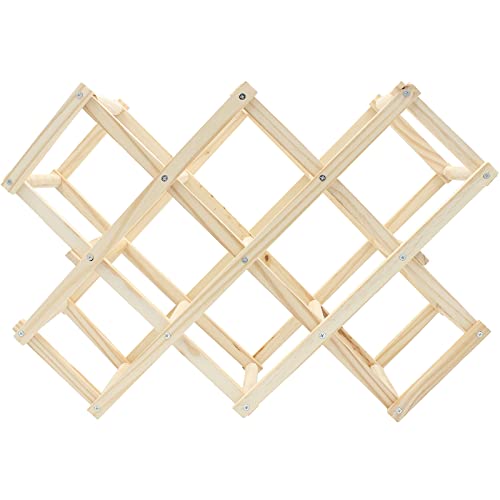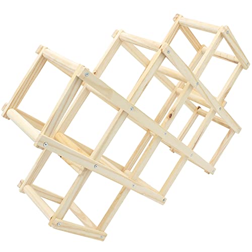 JIYOSE - رف نبيذ خشبي من جيوز، رف نبيذ 10 زجاجات، رفوف نبيذ قابلة للطي لسطح الطاولة، حامل زجاجات النبيذ لخزائن الطاولة، رفوف عرض للمطبخ والمنزل والبار والمخزن (لون خشبي)